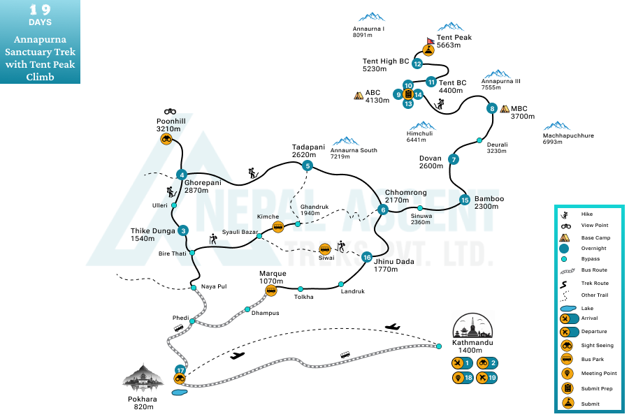 - A great combination of the Annapurna Sanctuary Trek with a thrilling Tent Peak Climb.