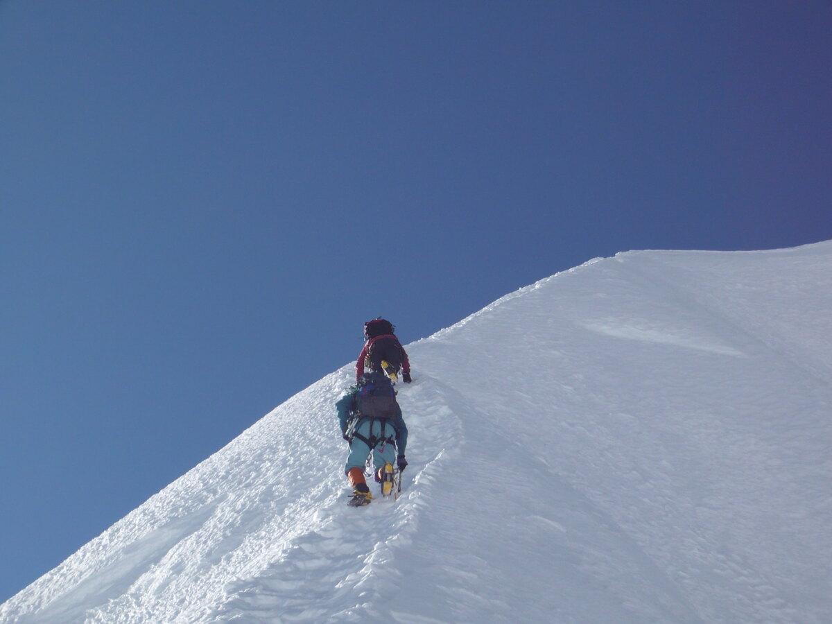 The ascent to the Tent Peak starts super early, before sunrise! It gets tricky here, so you must use special gear like crampons and ice axes. There will also be fixed-lined ropes to help you climb safely.