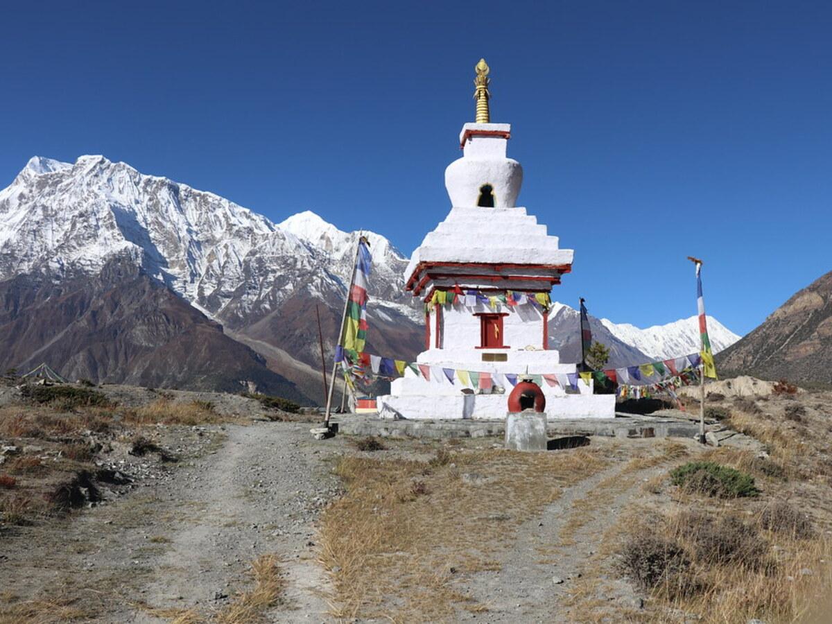 Manang, a traditional ancient town with astonishing mountain vistas, is one of the largest towns on the Annapurna circuit trek. It offers excellent options for acclimatization hikes to Ice Lake or Gangapurna Lake. From Manang, journey to Yak Kharka, where yaks graze against towering peaks. From here, the circuit trek involves a strenuous walk to Thorong La Pas via Thorong Phedi.