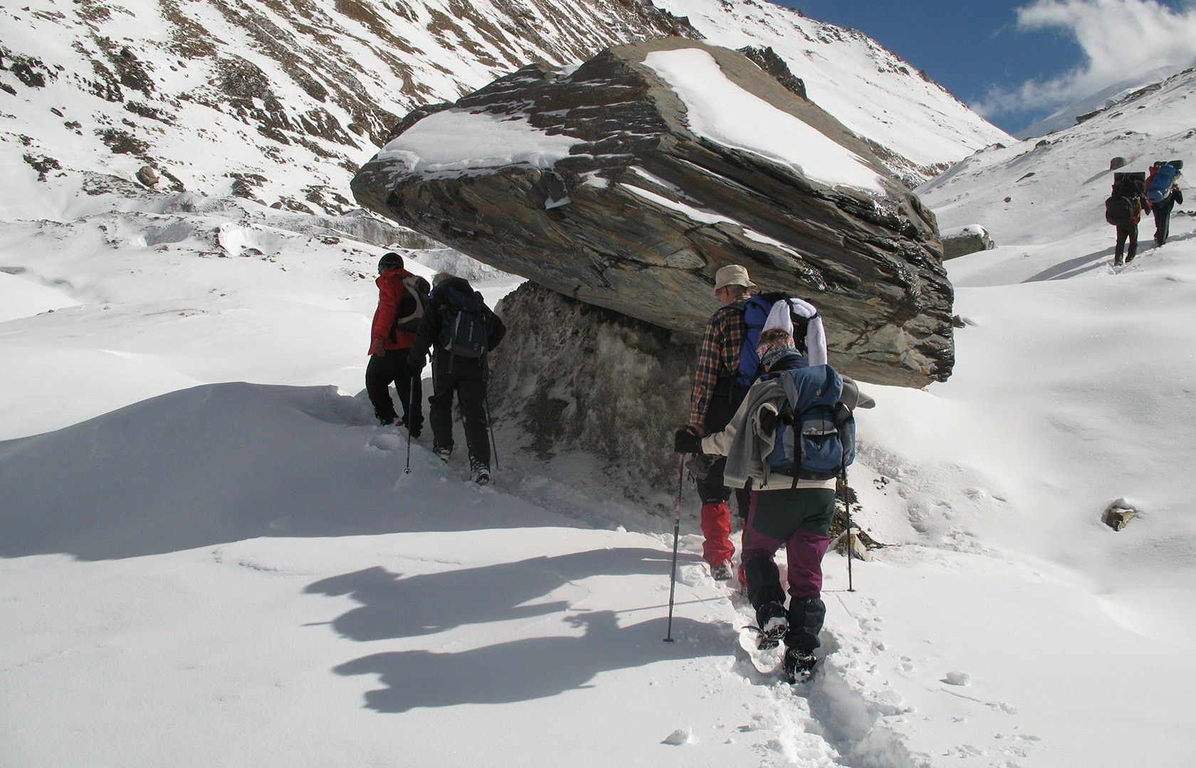Acute Mountain Sickness is usually seen in un-acclimatized people shortly after ascent to high altitudes. The condition occurs due to the thinning of air as the altitude increases. The condition, if not taken seriously and treated immediately, can be life-threatening and its symptoms can be seen generally above 3000 meters. Some of the symptoms of AMS are nausea, vomiting, tiredness, shortness of breath and cerebral pain. The treks are designed to properly acclimatize you to the change in high altitude climate and sufficient precautionary measures too are taken to take utmost caution. We also equip our staffs with cell phones and satellite phones in occurrence of any emergency cases. We are greatly driven to keep the safety and security of our clients as our foremost concern.